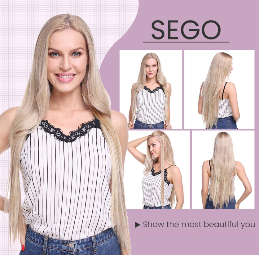 100% Natural Thick Clip in Hair Extensions 8 Pieces Full Head Long As Human Hair