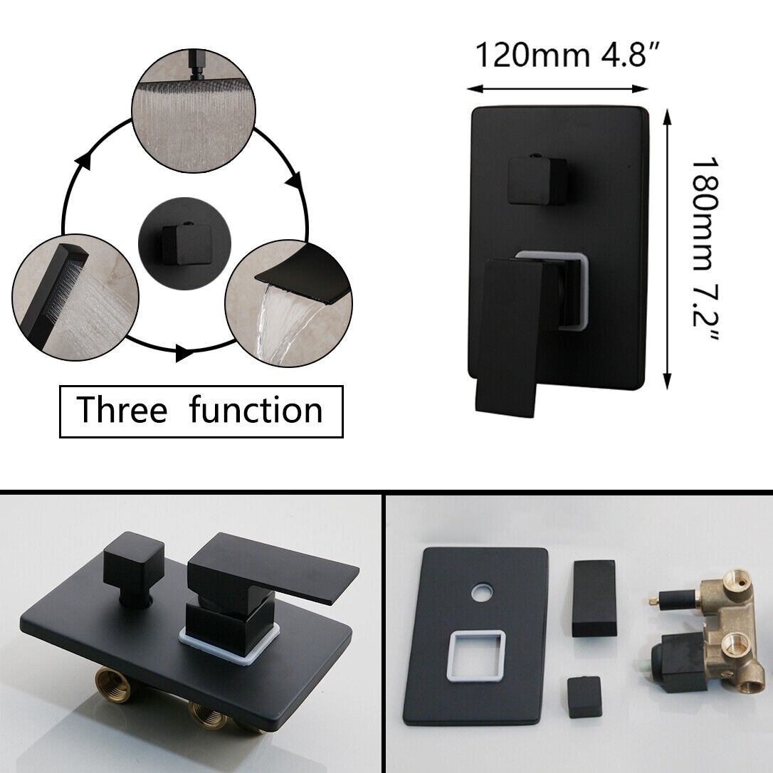 12" Black Bathroom Shower Faucet Set Square Shower Head Tub Mixer Wall Mount Tap