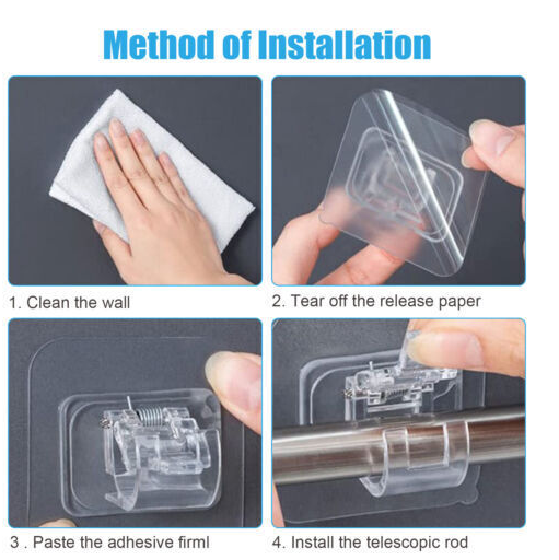 2-20X Nail Free Adjustable Curtain Rod Hooks Clip Self Adhesive Holder Bracket U