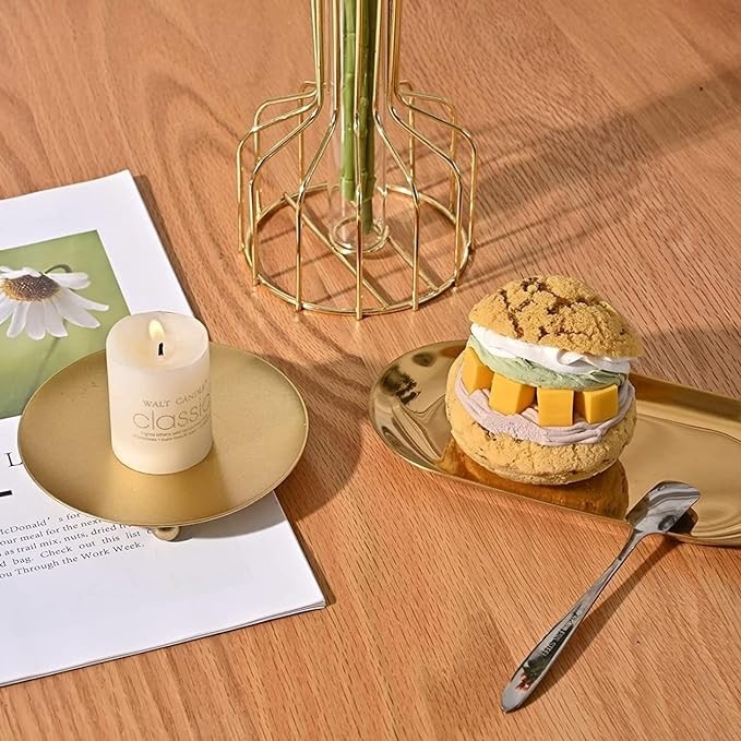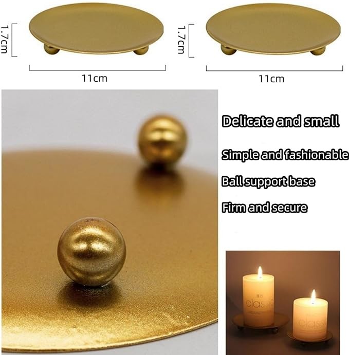 • ?【What You Get】:You will receive a set of 2 sleek golden Iron Candle Holders Candle Plates.Perfect for various occasions including Home Decoration,Banquet, Wedding Anniversary, Birthday Party, Holiday Dinner. This candle plate is suitable for most pillar candles, flameless candles, scented candles, and sphere candles with a diameter of up to 3 inches, creating a warm and inviting ambiance in your dining room, parlor, study, or bar.