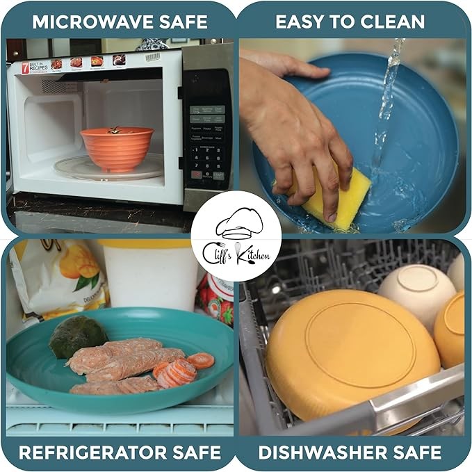?Convenient and Easy to Use: Our wheatstraw dinner plates set is microwave and dishwasher safe. With Cliff’s kitchen dinner set you can effortlessly freeze, heat and clean your meals, making them perfect for busy families on the go