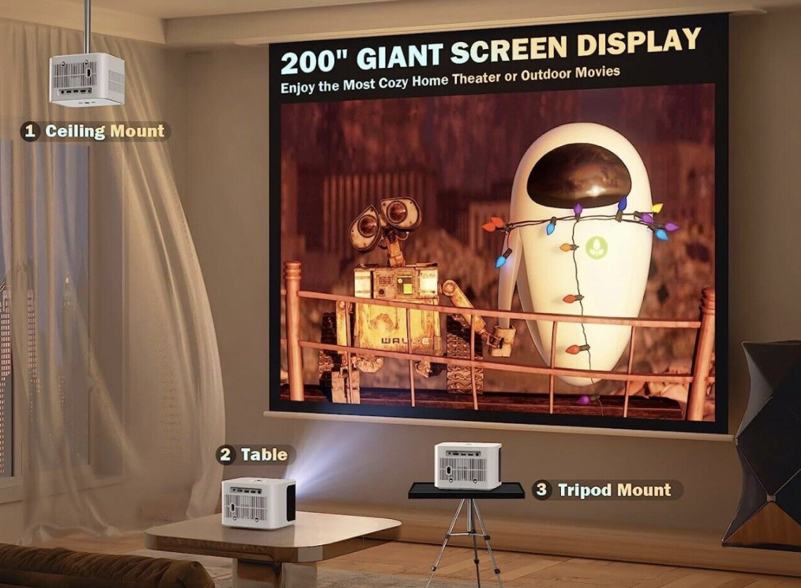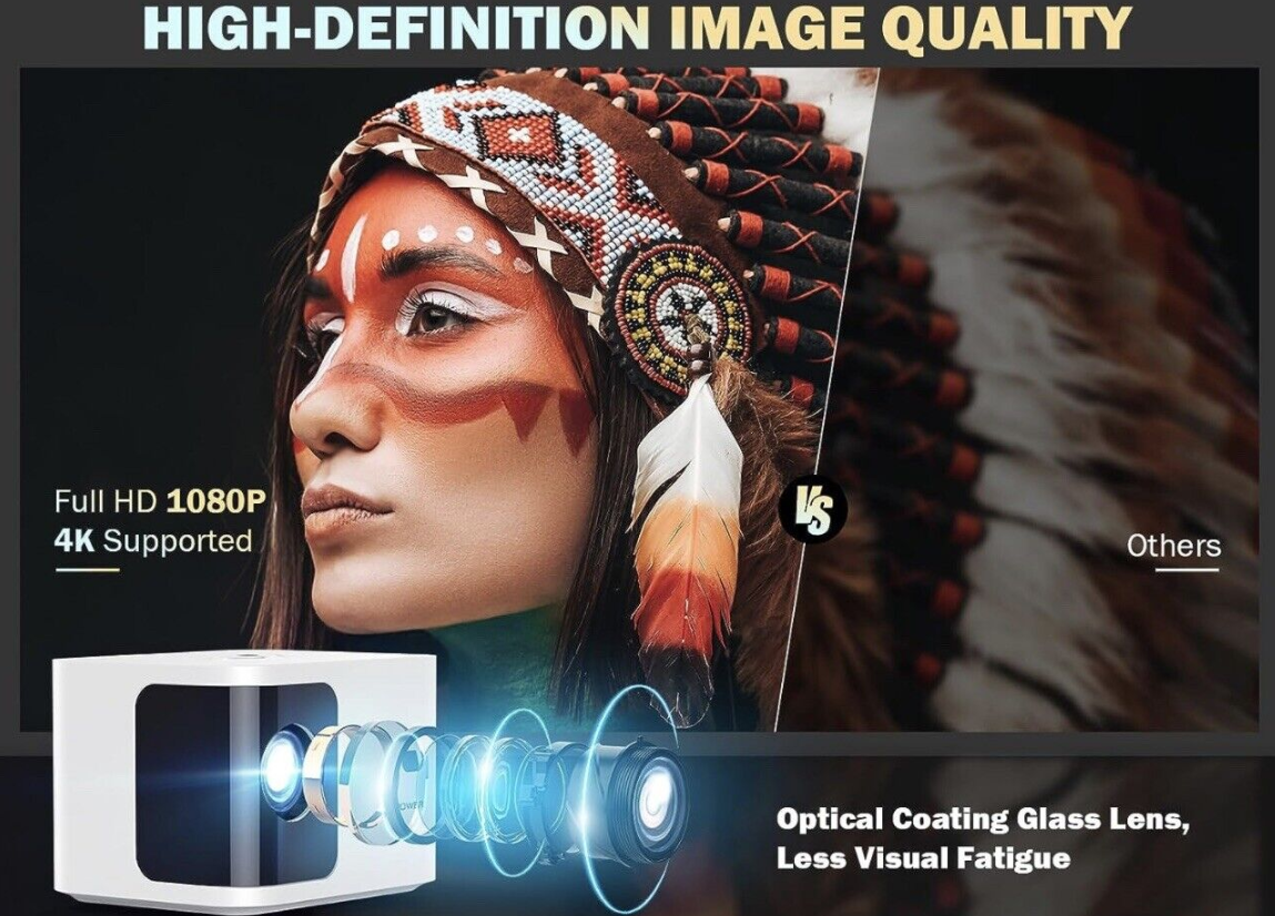 【Native 1080P HD & 12000L Movie Projector】DBPOWER H89 outdoor movie projector with native 1920*1080P resolution, 12000L brightness and 10000:1 high contrast ratio. 6-layer high refractive index coated lens restores the true color of the picture, presenting high-definition picture quality to reduce eye irritation. Whether home theater or outdoor movies, which can provide you with a more comfortable and ultimate visual experience.