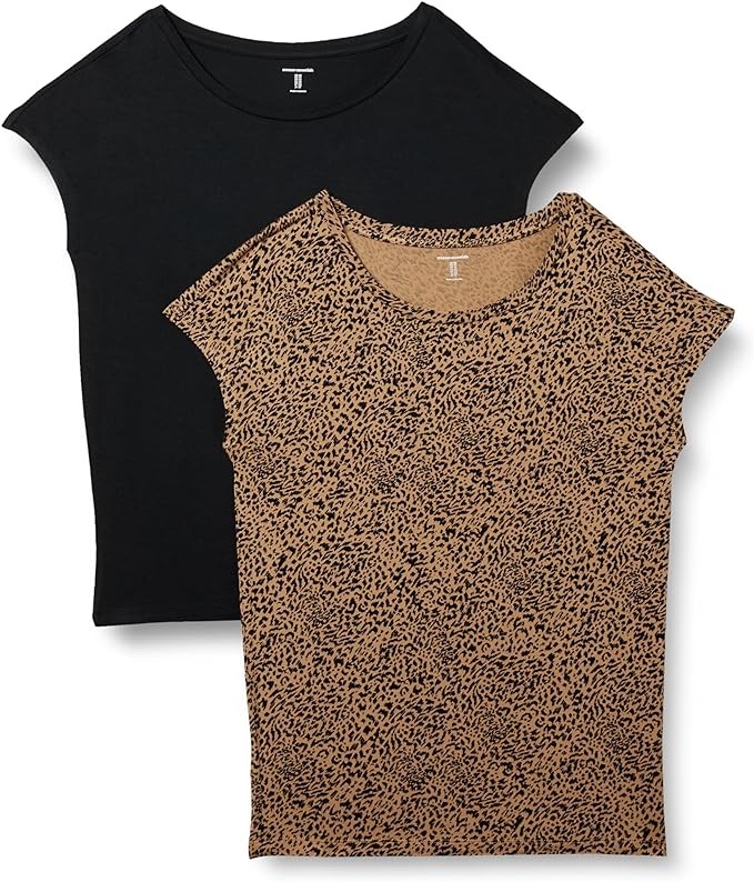 Amazon Essentials Women's Jersey Standard-Fit Short-Sleeve Boat-Neck T-Shirt, Pack of 2