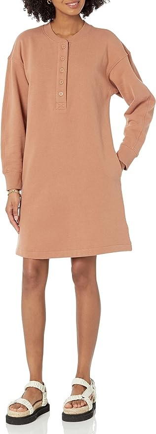 Amazon Essentials Women's Knit Henley Sweatshirt Dress (Available in Plus Size)
