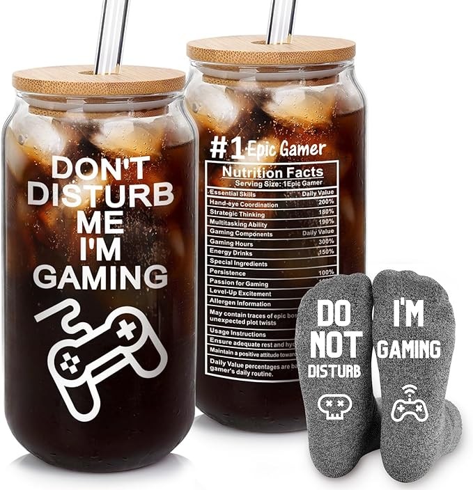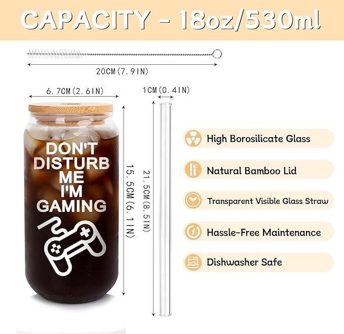 • TEEN BOY GIFTS DESIGN: Crafted for game enthusiasts, this glass cup features the iconic 'DON'T DISTURB ME, I'M GAMING' along with a playful game controller design.
