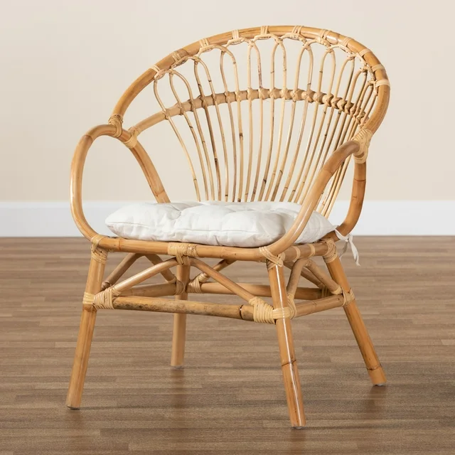 The warm, soothing tones of the Benicia dining chair refresh the mood of any dining room layout. Made in Indonesia, this chair is comprised of a natural rattan frame and includes a plush, fabric upholstered seat cushion. Slim rattan rods are expertly interlaced within the backrest to form a smooth embrace, while convenient armrests offer enhanced comfort. The Benicia will arrive fully assembled and features angled legs for excellent stability and support. Encouraging an air of ease, the Benicia dining chair transforms the atmosphere of any space. Due to the nature of the natural materials used in this product, it may have variations in areas such as, but not limited to, color, pattern, grain and texture. The hair-like strands of rattan/rattan-fiber are common due to nature of the material.