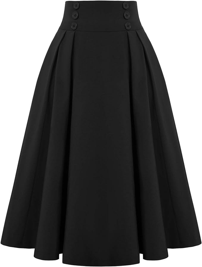 • Features:Pleated skirt midi, flared A line silhouette, elastic waist,6 decoration buttons, with 2 open pockets