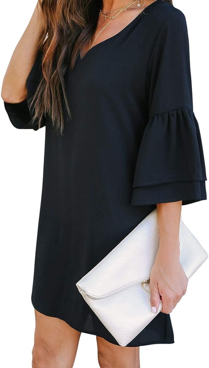 BELONGSCI Women's 2024 Summer Dress Sweet & Cute V-Neck Bell Sleeve Shift Dress Mini Dress, Perfect for Wedding or Graduation