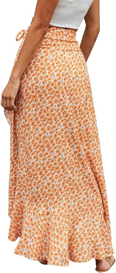 BerryGo Women's Boho Floral Wrap Maxi Skirt High Waisted Long Skirt with Slit