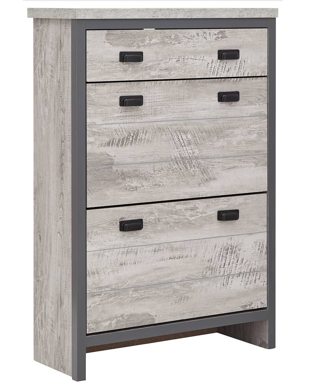 Boston 2 Tier 1 Drawer Shoe Cabinet Grey Slim Shoe Storage Hallway Porch