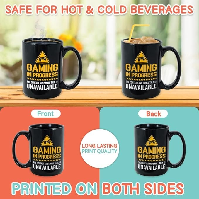 • STURDY GAMER COFFEE MUG THAT LASTS FOR A LIFETIME - With an 15 oz capacity, this ceramic gamer coffee mug can withstand high temperatures so it can be used in the microwave and dishwasher. The unique design is printed on both sides with an outstanding print quality that will last for a long time.