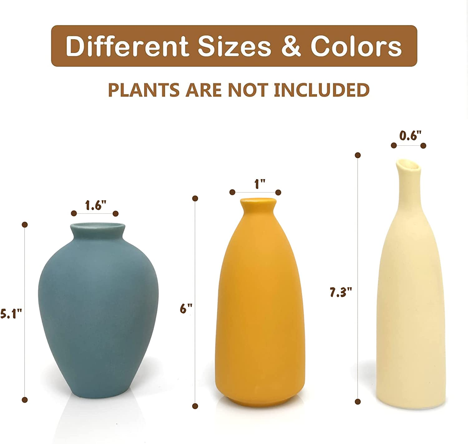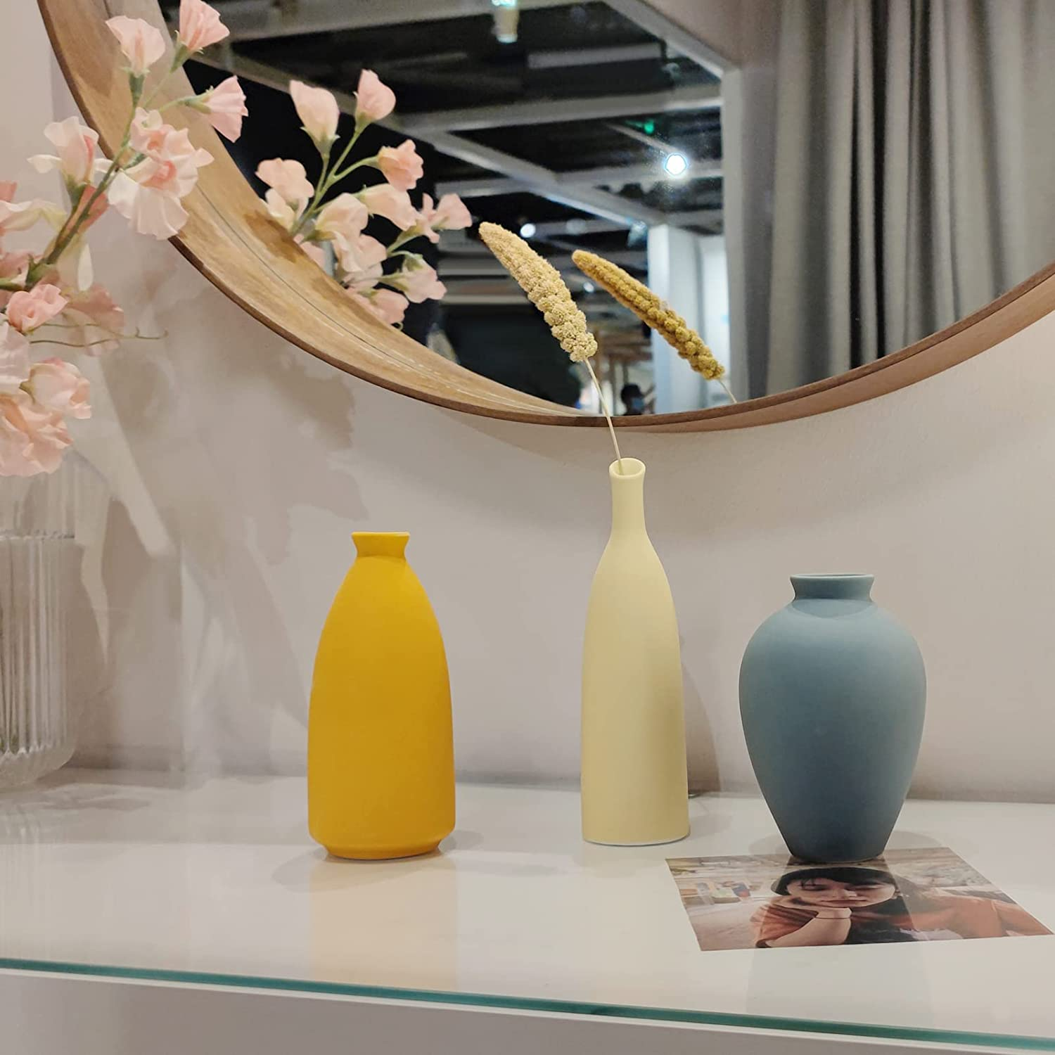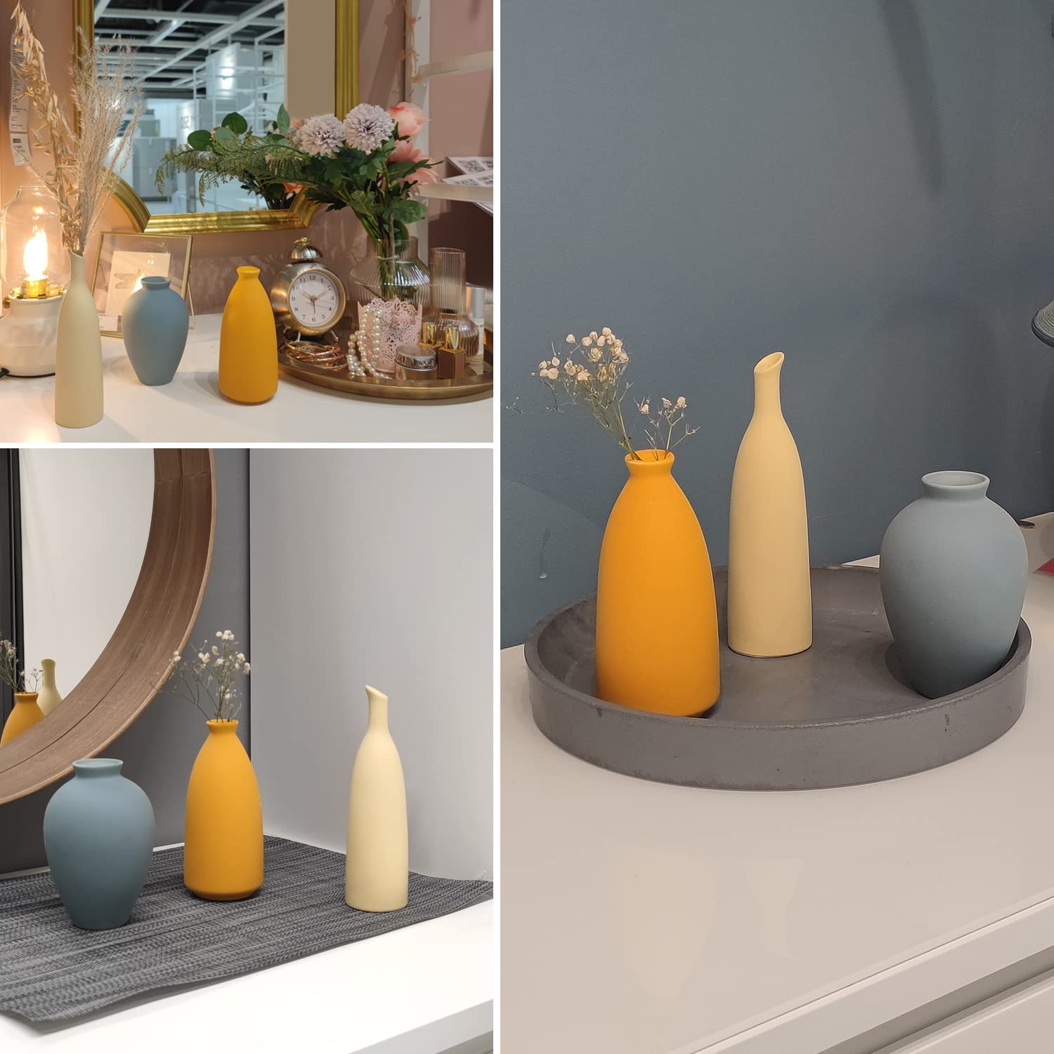 Ceramic Vase Set of 3 Small Flower Vases for Rustic Home Decor Modern Farmhouse
