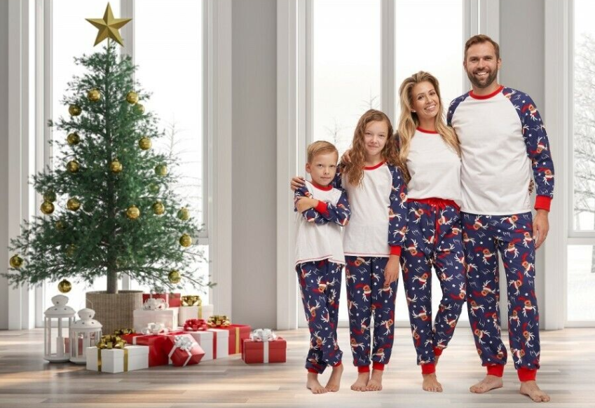 Christmas Family Matching Pyjamas Sleepwear PJs Set Adult Kids Nightwear Plain