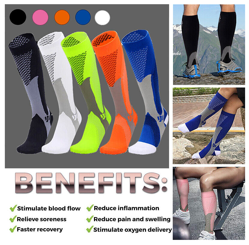 Copper Compression Socks Running Anti Fatigue Graduated Travel Flight Sleeve