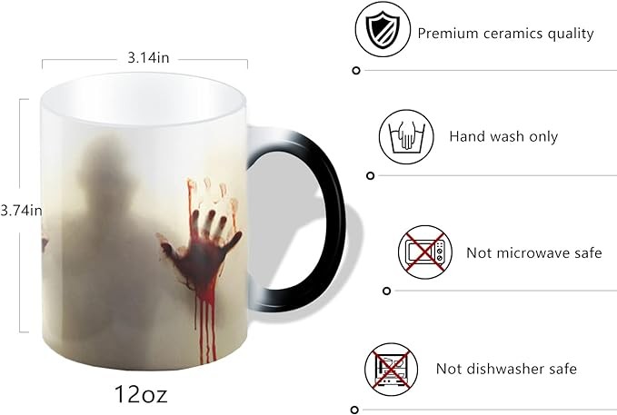 • 12 ounce funny mugs.Hand wash only, not suitable for microwave or dishwasher.Perfect for coffee,hot cocoa,hot milk,tea and more