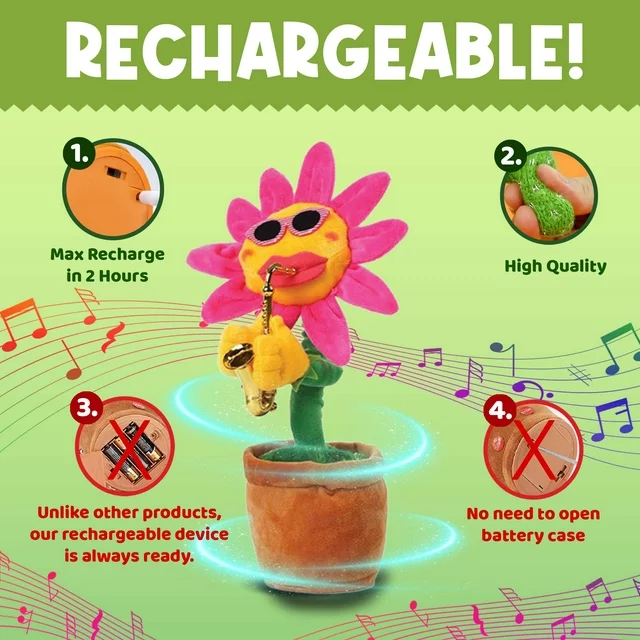 Dancing Cactus Toys, A Cactus That Can Dance, Sing, Twist, and Shine 120 English Dance Recordings Learn to Speak (Dancing Sunflower)