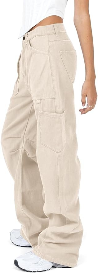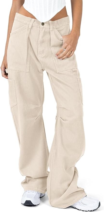 Darong Women's Cargo Pants Straight Wide Leg Casual Pants Trouser Y2K Pants with 6 Pockets