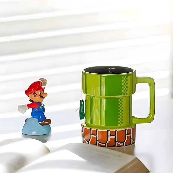 Drtupe Super Mario Warp Pipe Mug Ceramic Coffee Mug Gift for Gamers, Fathers, Coffee Enthusiasts, for Cappuccino, Latte or Hot Tea, 15 Oz, Green