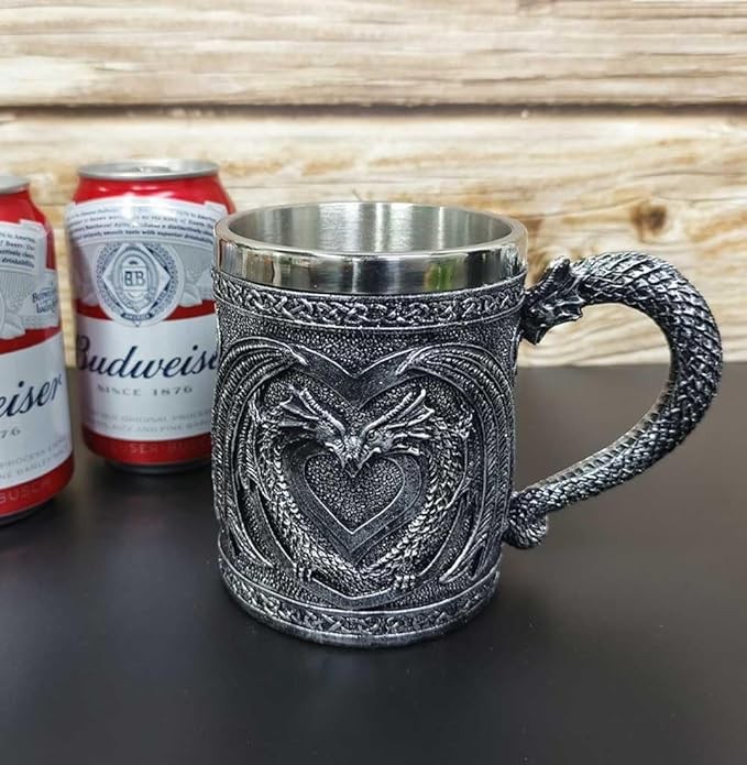 Dungeons and Dragons Gifts for Men/Women,Dnd Gaming Mugs-Novelty Gothic Game of Thrones Dragon Mug Cup for Medieval Party Decorations and Lovers-Stainless Beer Tankard Mug Double Dragon Coffee Mug