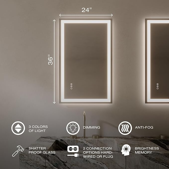 • [Versatile Placement] With dimensions of 24x36 inches, this black bathroom decor mirror is the perfect size to enhance any wall and its versatile design of mirror vanity allows you to place it vertically or horizontally