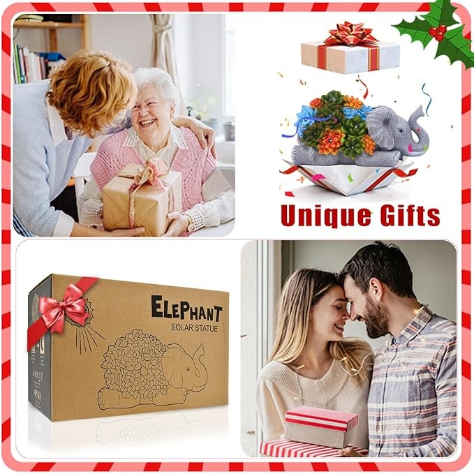 • 【Beautiful Home and Garden Decoration】The solar resin elephant statues with succulent suitable for garden decor/home decor/house decor/lawn ornaments/front porch decor/yard decorations outdoor/back decor/backyard decor.