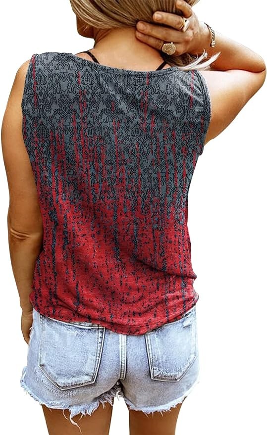 ETCYY Sleeveless V Neck Tank Tops for Women Loose Fit Causal Summer Tie Dye Country Music Ring Hole Floral Printed T Shirt