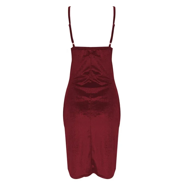 formal Dresses for Women Wedding Guest Ladies Temperament Slit Pleated Velvet Suspender Evening Dresses Red