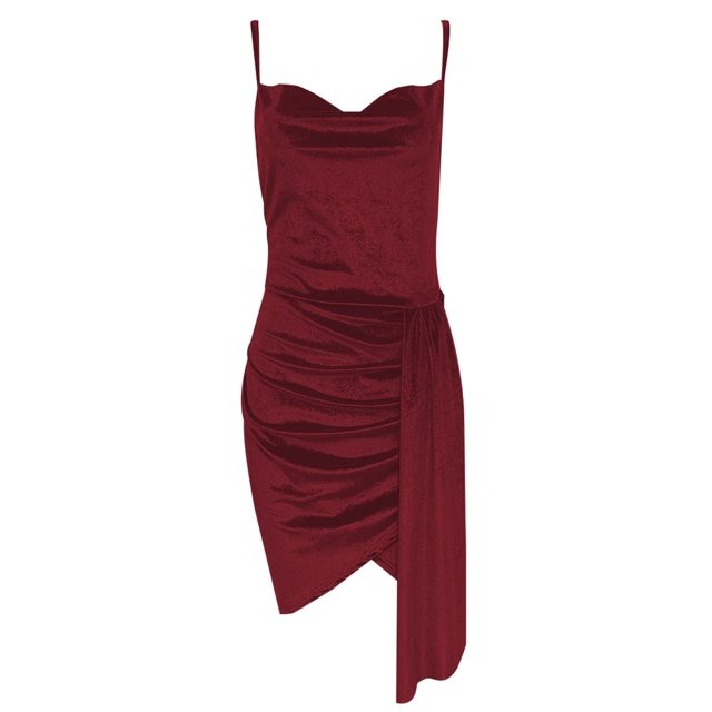 • Ladies Temperament Slit Pleated Velvet Suspender Dress Evening Dress