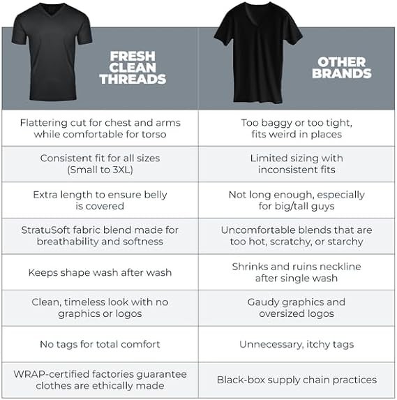 Fresh Clean Threads V Neck Pack T Shirts for Men - Pre Shrunk Soft Fitted Premium Classic Tee - Men's T-Shirt Cotton Poly