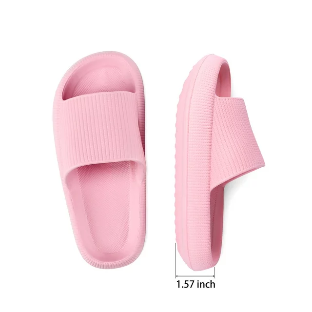 Quick-dry slides with a thick, soft, ventilated and non-slip sole.