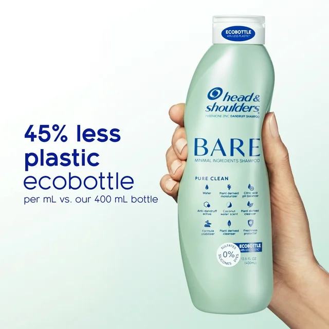 Introducing Head & Shoulders BARE Soothing Hydration - a new kind of anti-dandruff shampoo with only 9 ingredients. It's sulfate free, silicone free, and dye free, giving you effective dandruff protection with the BARE minimum. Take dandruff protection to the MAX with minimal ingredients.Brought to you by the #1 dermatologist recommended brand, Head & Shoulders BARE Soothing Hydration shampoo is formulated for dry hair & scalp. Featuring a refreshing orchid & aloe scent, this hydrating formula soothes your dry scalp & protects you from dandruff while leaving your scalp & hair feeling clean and moisturized. Dermatologically accredited by the Skin Health Alliance, this formula is Dermatologist Verified Safe & Effective. Hardworking, high quality and trusted ingredients were carefully selected to ensure this formula gets the job done. The clinically proven, dandruff-fighting ingredient Zinc Pyrithione (aka ZPT), fights flakes & dryness to ensure your scalp & hair are at its best.Packaged in Head & Shoulders' most sustainable bottle yet: this new ECOBOTTLE is made with 45% less plastic (vs. our 370 mL bottle). Less plastic means our bottle is lightweight, easy to squeeze, and rollable for the last drop. Minimal ingredients. Minimal plastic. Dandruff protection. Job Done.
