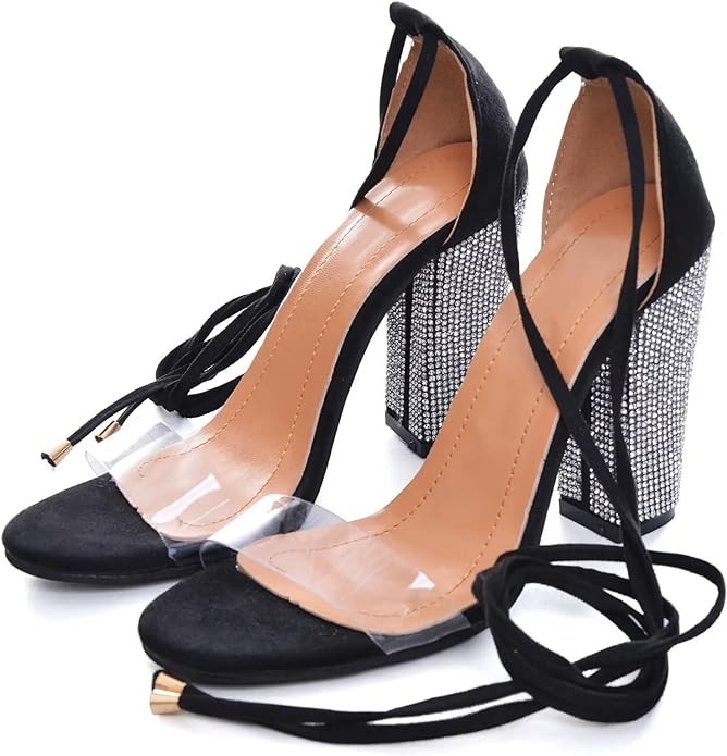 • High-heeled sandals Name: Women’s Gold High Heels Sandals with Rhinestone Ankle Strappy Clear Chunky Heels Dress Party Pumps Shoes/Women's Gladiator Ankle Strap Clear Rhinestone Lace up Chunky High Heel Strappy Sandals/Women's Pointy Toe Ankle Strap Rhinestone Covered Stiletto Heel Sandal