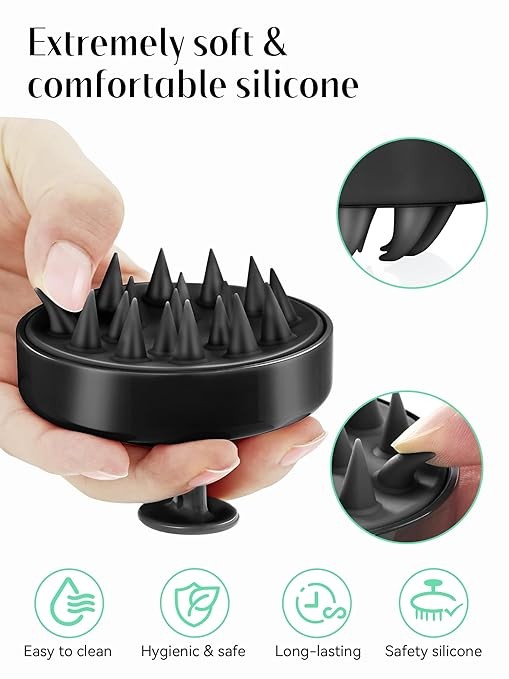 HEETA Scalp Massager Hair Growth, Scalp Scrubber with Soft Silicone Bristles for Hair Growth & Dandruff Removal, Hair Shampoo Brush for Scalp Exfoliator, Whole Black