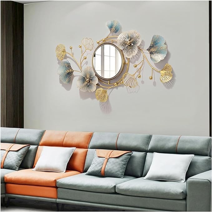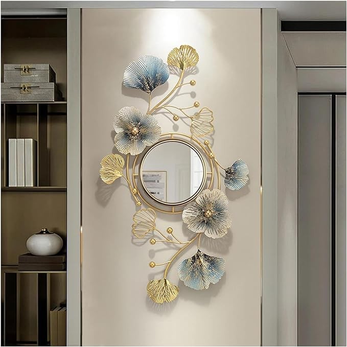 • MODERN DESIGN: Creative handmade metal decorative Wall Mirror, The ginkgo leaf shape wall is made of wrought iron material forging, strong three-dimensional effect, High temperature resistant paint makes bright colors not easy to fade. Beautifully wall mirror of metal in a design that gives any indoor wall a striking dimensional look.