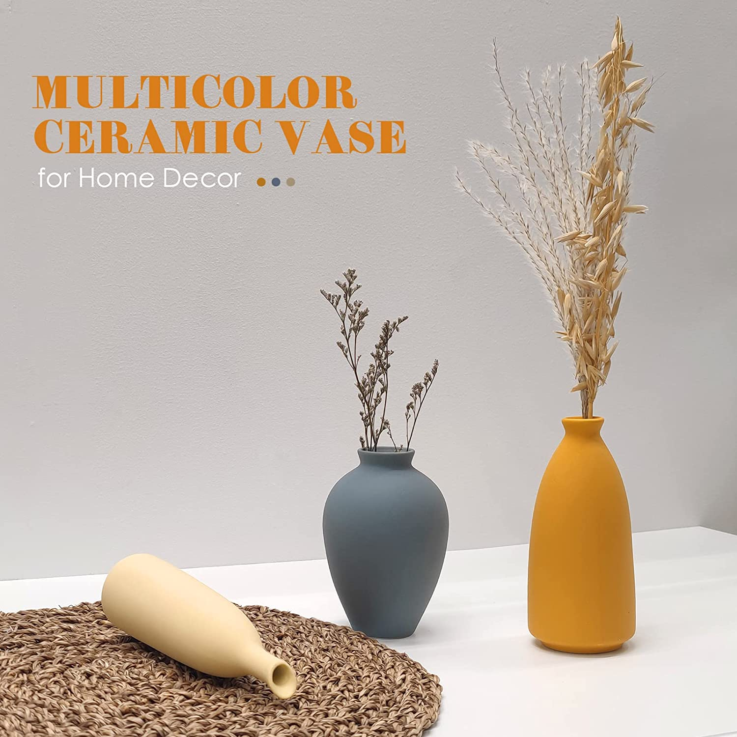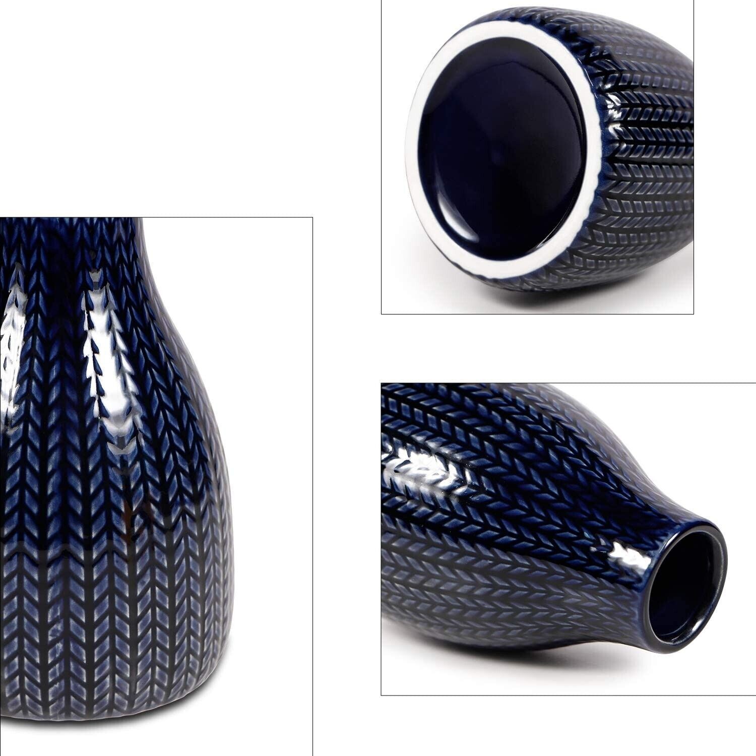 Home Living Room Decor Set of 3 Small Dark Blue Stoneware Ceramic Flowers Vases