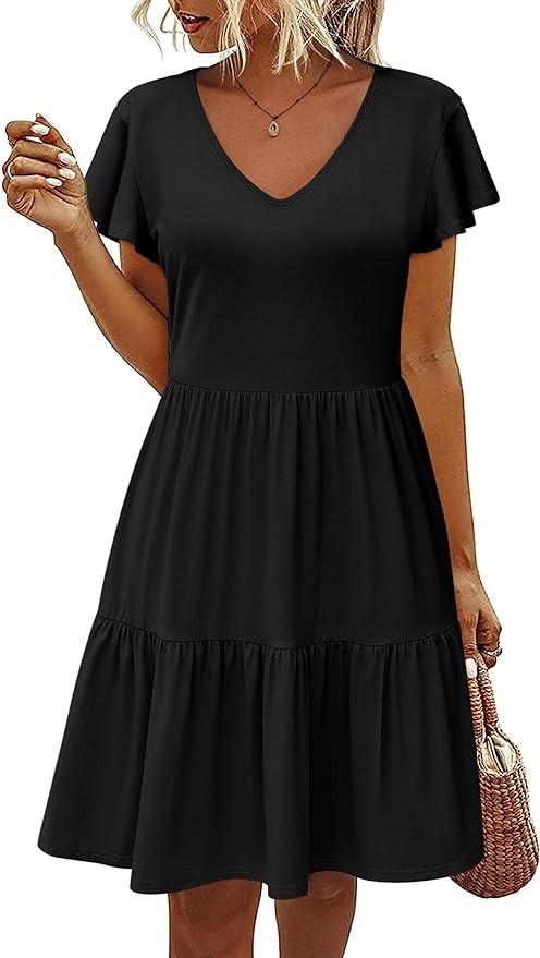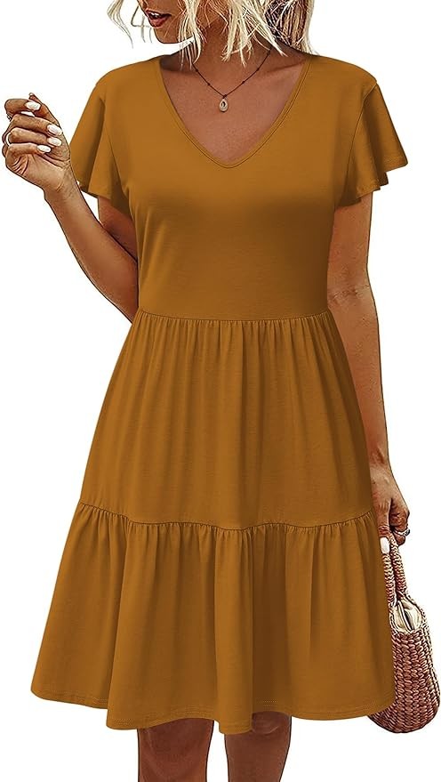 • 【Feature】: Women's tiered ruffle dress/ Ruffled Dress /flutter sleeve mini dress/ Cap Sleeves/ Ruffle Armhole Hem/ V Neck/ Womens Summer Dress/ Knee Length Dress/ Loose Fit Dress/ Ruched T-Shirts/ Pleated Summer Dress/ Solid Dress