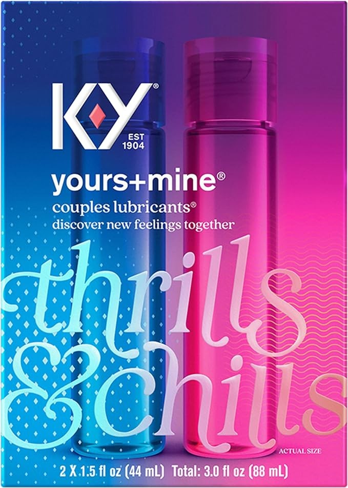 K-Y Yours + Mine Couples Personal Lube, Two Personal Lubricants, Water Based Lube for Women & Glycerin-Based Lube for Men, 2 x 1.5 FL OZ