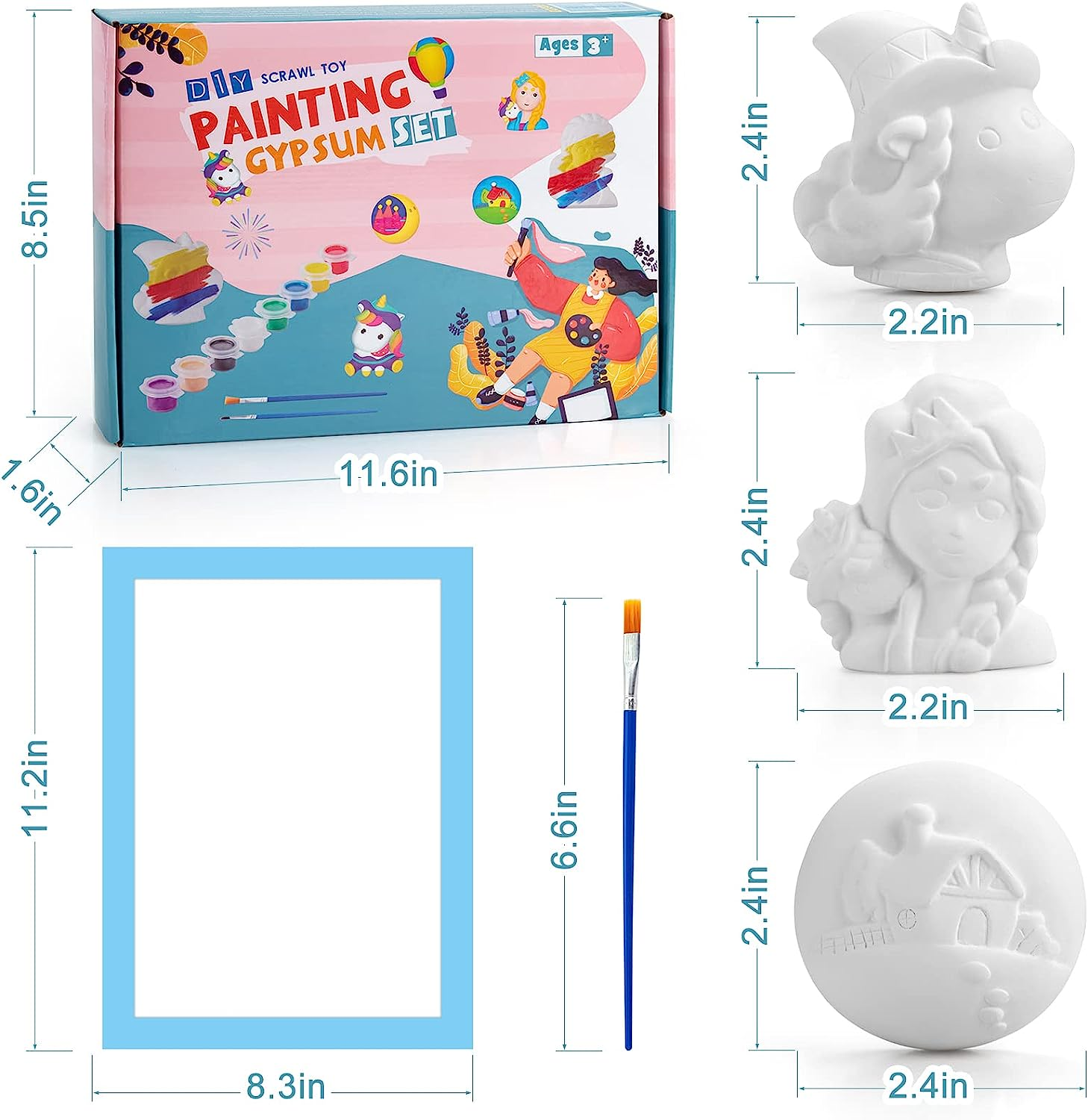 8 * Figurines, 8 * Color Paint, 2 * Photo Frame Cardboard, 4 * Br