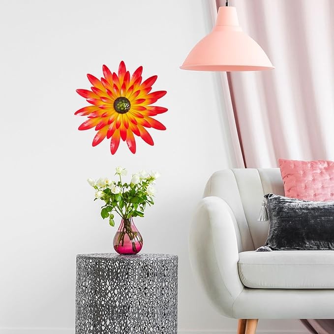 • 【Easy to Install】 This orange flower metal wall art decor have hooks attached to their back side for easy hanging, making it easy to latch onto wall, tree trunk, fencing or lattice work in your yard, peach, bathroom.