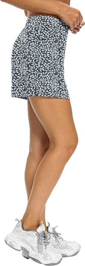 • WIDE ELASTIC WAIST: The activewear skorts with compression-fit shorts inside is elastic and comfortable to wear, which can tummy control mildly and stay in place, not roll down when you do sport. Flat, high-rise waistband creates a snug fit, provides a nice natural fit with plenty of coverage while bending and stretching.