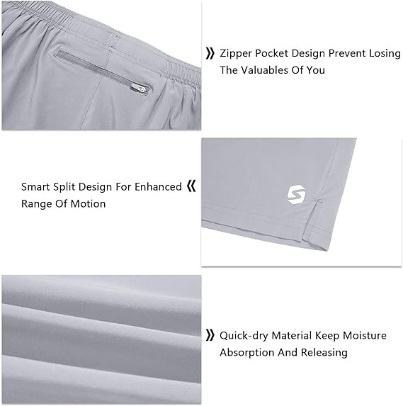 Men's 5 Inch Running Shorts Lightweight Athletic Workout Gym Shorts Liner with Zipper Pockets