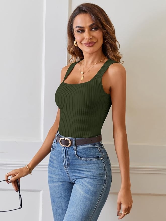 Unique Design: Knit tanks will be popular in 2024, knit has a rich texture. Feel the warmth of fashion stitch by stitch. This basic knit features a classic square neck, sleeveless, ribbed texture, slim fit, solid color, casual and simple style.