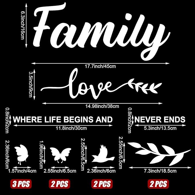 • Complete mirror wall decal set: you will receive 1 set of 3D acrylic mirror wall decal stickers including the phrase"Family where life begins and love never ends"3 pieces of butterfly mirror stickers and 2 pieces of leaf stickers,The design is fine and the size is large enough to meet your daily family decorates requirements, it is as a housewarming gift for your friends, family, and classmates, they will love it