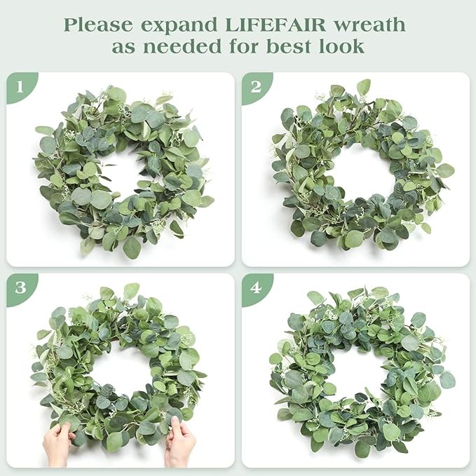 • Kindly note: In order to prevent the wreath from being damaged during shipping, we have to tighten the wreath in package in advance. Once you receive our wreath, please do a favor to adjust the greenery wreath as needed to get the best look.