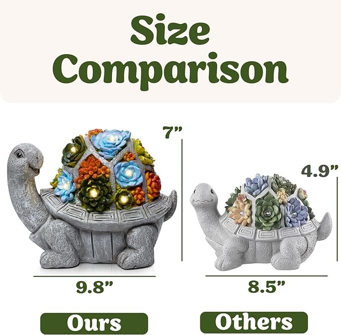 • Unique Gift for Garden Lovers - Surprise garden enthusiasts with our solar turtle decor! Click 'Add to Cart' now to give our solar garden statues during a housewarming, birthday, or Mother's Day!