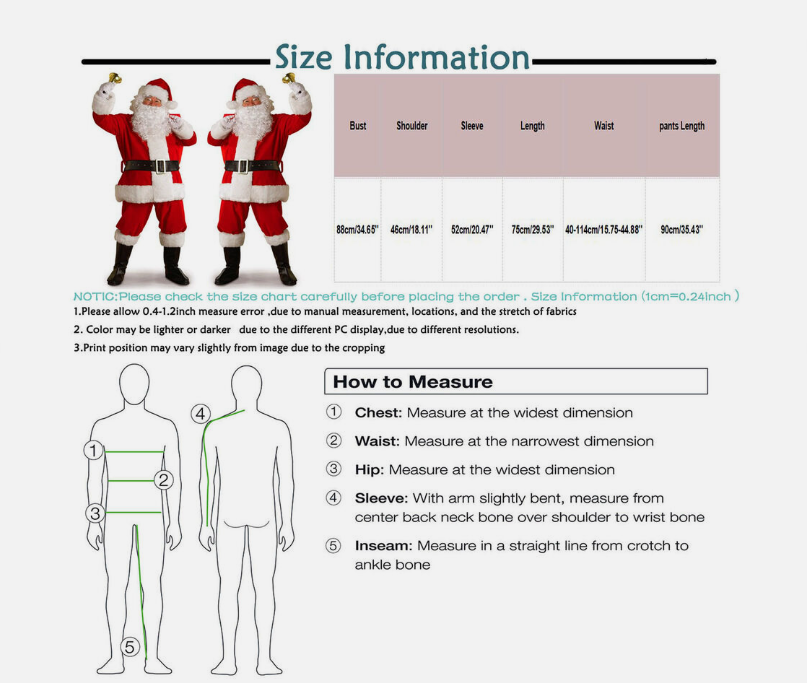 NEW Santa Claus Costume Suit Adult Father Christmas Fancy Dress Mens Xmas Outfit