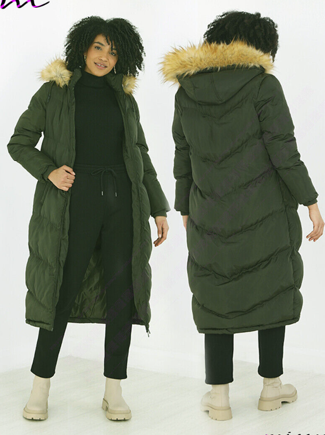 NEW Womens LADIES MAXI LONG PUFFER PARKA Quilted WINTER COAT FUR HOOD LONG