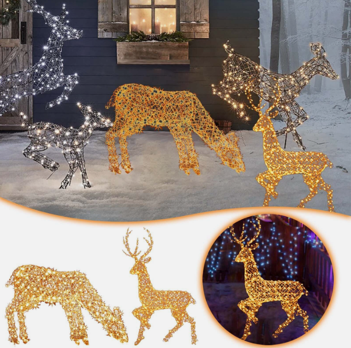 • 【Designed for Outdoors】: Each Christmas lighted reindeers animal pile is made of acrylic material, which is durable, and . This deer yard artwork is perfect for display in your yard outdoor even in rain, sun, and wind.
