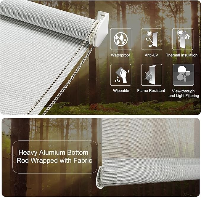 • 【Excellent Fabrics】Our fabrics are available in five neutral tones each with a 5% openness. Solar screen shades with a 5% openness are generally widely used and expertly crafted to UV protection, glare control, water proof, flame retardant and view-through, all while filtering sunlight.