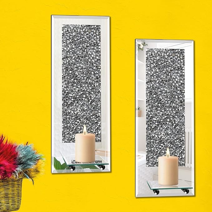 Phore Wall Candle Sconces Set of 2 Crystal Crush Diamond Mirrored Candle Holder Wall Decorations for Living Room, Dining Room, Bedroom & Bathroom